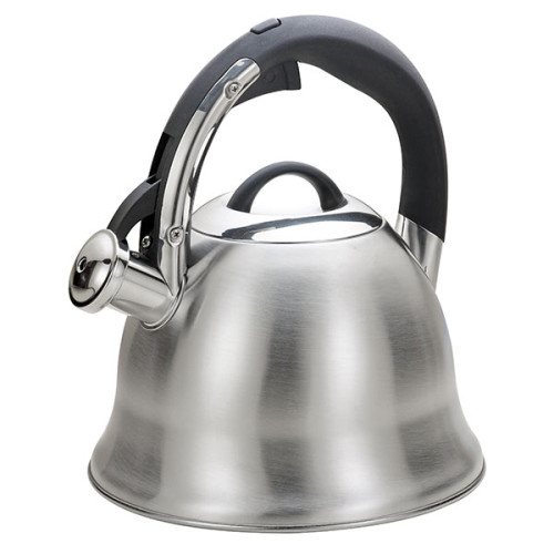 Чайник з широким дном Maestro MR 1320 об'ємом 3 літри виготовлений з матової нержавіючої сталі, оснащений пластиковою рукояткою з механізмом відкидання свистка. Відмінною особливістю даної моделі чайника є колоколообразная форма корпусу чайника розширюється до низу. Широке дно чайника забезпечує швидке нагрівання води. Випускається в двох варіантах кольору рукоятки: чорна, коричнева (з малюнком під дерево).
